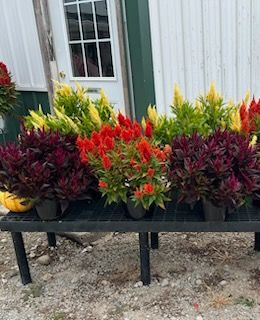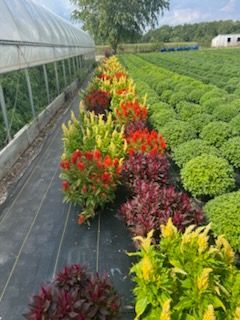 We make all our own hanging baskets here on the farm. The hanging baskets are different every year and unique. Also, we sell many different annuals and perennials. Rose bushes, butterfly bushes, and more!